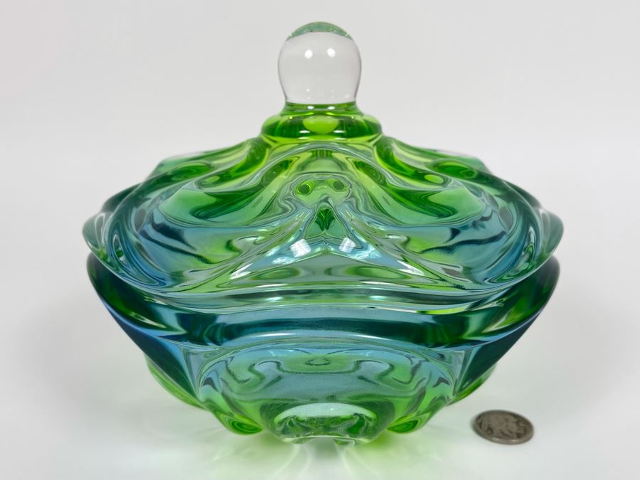 Teal Glass Candy Bowl Lidded Candy Dish Whitehall Cube Cubist